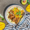 In an egglife wrap, add Kevin’s Cilantro Lime Chicken, avocado salsa, shredded cheese and pico de gallo! Repeat with remaining wraps and enjoy!