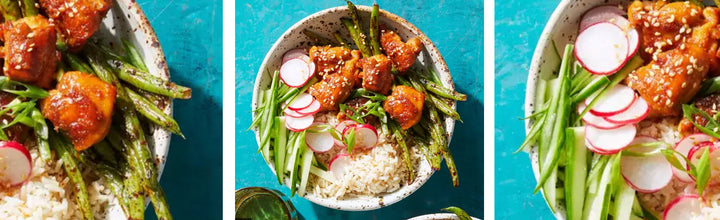 Add Kevin’s Orange Chicken and top with sliced radishes and green onion.