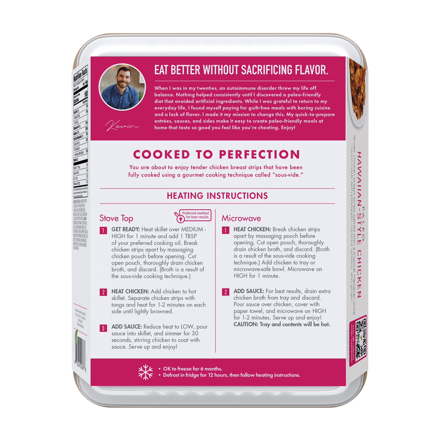 Chicken In Chicken Broth Cooked Out As A Result Of The Sous-Vide Process (Boneless Skinless Chicken Breast, Water, Vinegar, Yeast Extract, Sea Salt, Cultured Onion Juice, Black Pepper, Citrus Extract), Hawaiian Pineapple Sauce (Coconut Aminos [Coconut Nectar, Sea Salt], Crushed Pineapple [Pineapple, Citric Acid, Absorbic Acid], Water, Sherry Wine, Distilled Vinegar, Apple Cider Vinegar, Tapioca Starch, Yeast Extract, Dehydrated Garlic, Dehydrated Onion, Ginger Puree, Spices, Xanthan Gum, Monkfruit Extract, Orange Oil).