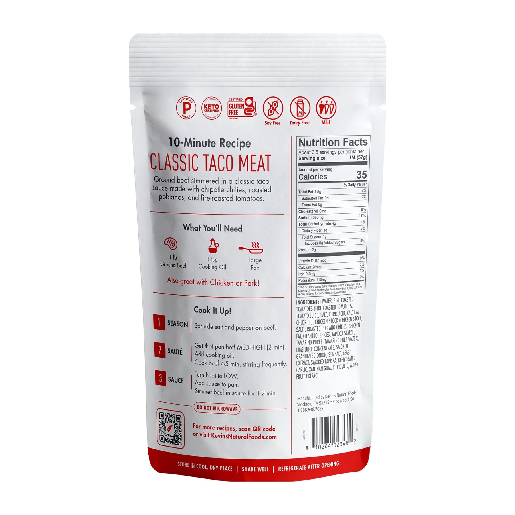 Water, Fire Roasted Tomatoes (Fire Roasted Tomatoes, Tomato Juice, Salt, Citric Acid, Calcium Chloride), Chicken Stock (Chicken Stock, Salt), Roasted Poblano Chilies, Chicken Fat, Cilantro, Spices, Tapioca Starch, Tamarind Puree (Tamarind Pulp, Water), Lime Juice Concentrate, Smoked Granulated Onion, Sea Salt, Yeast Extract, Smoked Paprika, Dehydrated Garlic, Xanthan Gum, Citric Acid, Monk Fruit Extract.