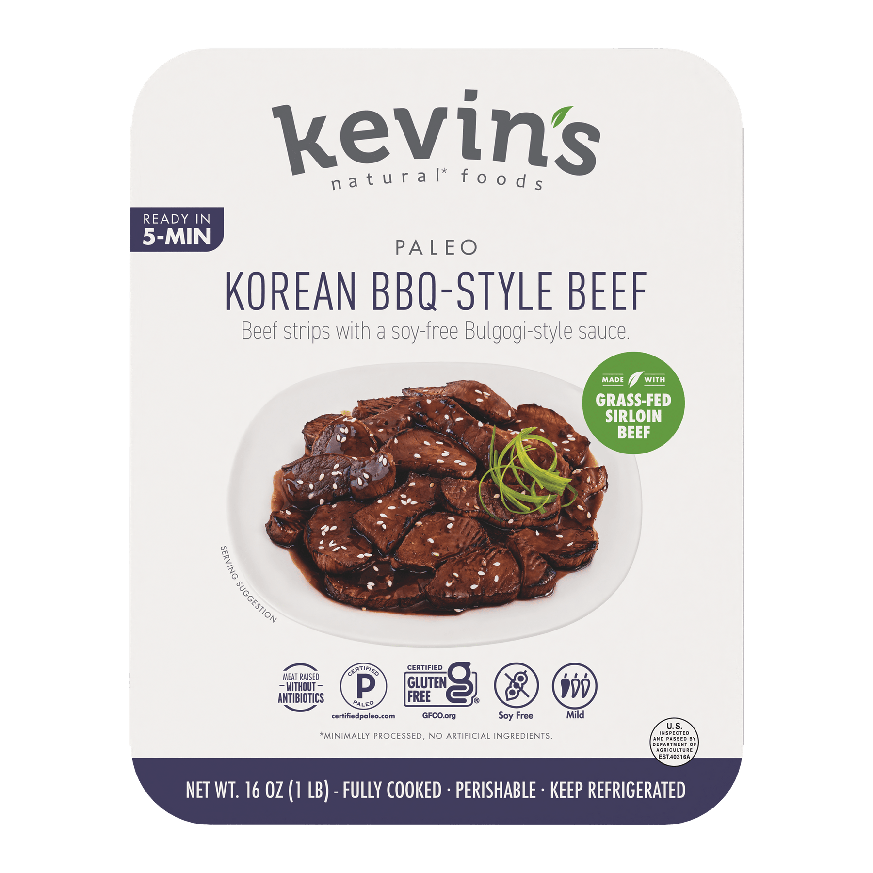 Grass-Fed Beef in beef broth cooked out as a result of the Sous-Vide process (Beef, Water, Vinegar, Yeast Extract, Onion Powder, Sea Salt, Black Pepper, Citrus Extract), Korean Bbq Sauce (Water, Coconut Aminos [Coconut Nectar, Water, Sea Salt], Vinegar, Coconut Sugar, Roasted Sesame Oil, Lemongrass Puree [Lemongrass, Water], Tapioca Starch, Yeast Extract, Cilantro, Dehydrated Onion, Spices, Dehydrated Garlic, Shiitake Mushroom, Xanthan Gum, Dehydrated Ginger, Monk Fruit Extract).