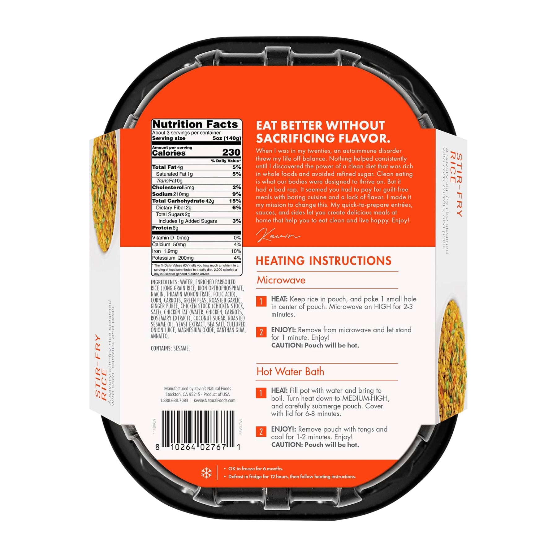 My husband would give this a 5 for flavor but I like it a tad less. Tastes homemade and pairs well with the Kevin's meats - I believe teriyaki and Mongolian were the favorites. For a hungry person, one package of this and one package of a beef/chicken Kevin's is a perfect, filling size (and makes for a fast, easy dinner). I would love to see more healthy, low saturated fat side dishes from Kevin's!